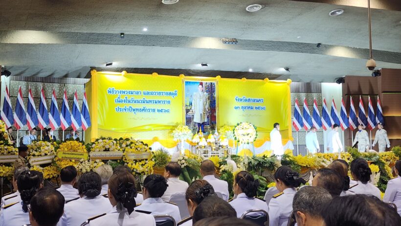 นายทองหลาย พรมพิลาด นายกองค์การบริหารส่วนตำบลโนนหอม พร้อมคณะผู้บริหารหัวหน้าส่วนราชการ และเจ้าหน้าที่เข้าร่วมงานรัฐพิธี “วันนวมินทรมหาราช” วางพวงมาลาและถวายราชสดุดี ประจำปี พ.ศ 2568 ในวันจันทร์ที่ 13 ตุลาคม 2568 เวลา 07.30 น. ณ หอประชุมคุรุสดุดี สหกรณ์ออมทรัพย์ครูสกลนคร จำกัด อำเภอเมืองสกลนคร จังหวัดสกลนครข่าวประชาสัมพันธ์, ภาพกิจกรรม Admin จำนวนผู้เข้าชม : 3 Facebook iconFacebookTwitter iconTwitterLINE iconLine