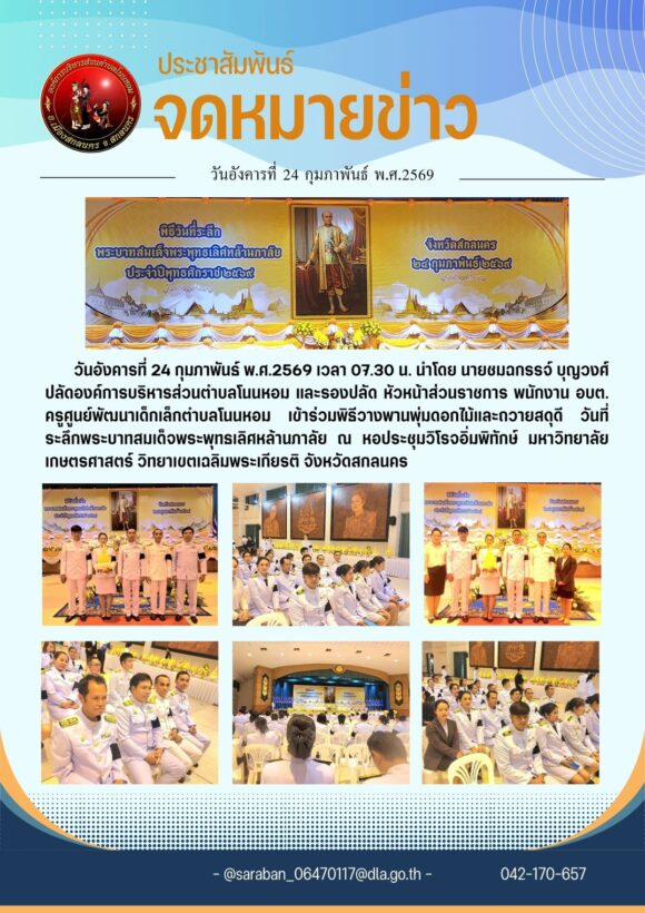 ข่าวประชาสัมพันธ์ วันอังคารที่ 24 ก.พ. 2569 ร่วมพิธีวางพานพุ่มดอกไม้ และถวายราชสดุดี วันที่ระลึกพระบาทสมเด็จพระพุทธเลิศหล้านภาลัย ณ หอประชุมวิโรจอิ่มพิทักษ์ มหาวิทยาลัยเกษตรศาสตร์ วิทยาเขตเฉลิมพระเกียรติ จังหวัดสกลนครข่าวประชาสัมพันธ์, ภาพกิจกรรม Admin จำนวนผู้เข้าชม : 3 Facebook iconFacebookTwitter iconTwitterLINE iconLine